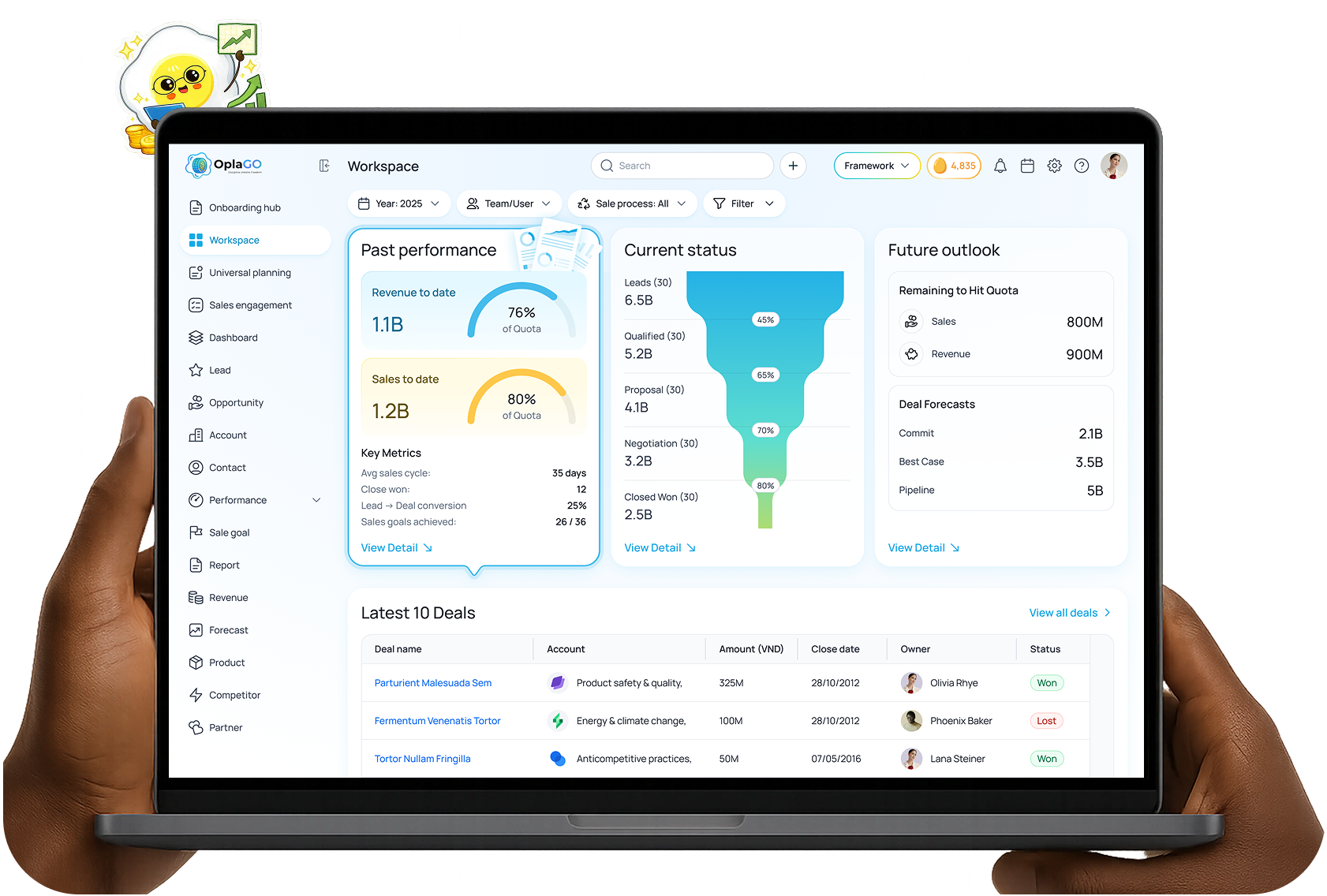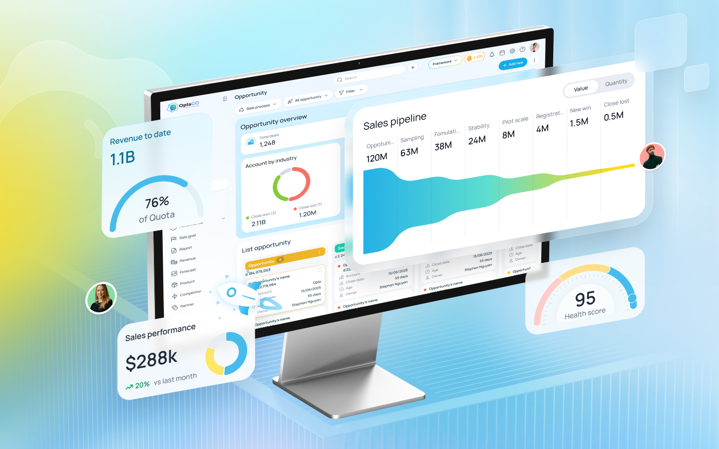 Create a consistent winning rhythm with an intuitive, human-centric design. Opla simplifies complex processes into smooth daily actions, making it natural for your team to keep the pipeline moving and data fresh.